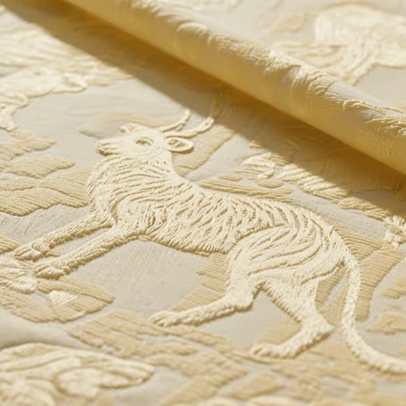 Kain Jacquard Tunggal ialah fabrik mewah yang ditenun pada satu alat tenun. Corak jacquard yang indah pada permukaan memberikan deria tiga dimensi dan kesan visual yang unik, dan bahagian belakangnya rata dan mempunyai tekstur yang unggul. Proses istimewa fabrik ini bukan sahaja meningkatkan deria tiga dimensi corak, tetapi juga menjadikannya menunjukkan perubahan tekstur yang jelas dalam sentuhan, dan juga mengekalkan ringan dan keselesaan fabrik, yang sesuai untuk pelbagai keperluan reka bentuk fesyen. Corak jacquardnya yang indah dan proses tenunan yang halus menjadikan fabrik hiasan dan mewah, menjadikannya pilihan ideal untuk pakaian fesyen mewah dan hiasan rumah. Kain Jacquard Tunggal sesuai untuk bidang pakaian fesyen terutamanya baju sejuk, skirt, kot dan gaya lain. Corak tiga dimensi fabrik ini menambahkan deria reka bentuk dan lapisan yang unik pada pakaian, yang amat sesuai dipakai pada musim luruh dan musim sejuk, memberikan kehangatan sambil tidak kehilangan rasa fesyen.