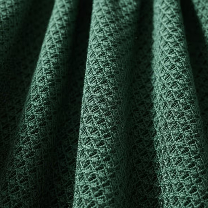 Kain birdseye tenunan anjal poliester adalah fabrik yang direka untuk memenuhi keperluan sukan, pakaian musim panas, peralatan luar dan pakaian kasual. Menggunakan proses tenunan jalinan yang unik, fabrik ini mengekalkan kebolehnafasan dan sifat penyerap lembapan fabrik birdseye tradisional sambil meningkatkan kekuatan dan ketahanan fabrik. Permukaannya terdiri daripada lubang-lubang kecil, yang bukan sahaja menambah kesan visual yang unik pada fabrik, tetapi juga meningkatkan kebolehnafasan, membolehkan peluh dikeluarkan dengan cepat, memastikan pemakai kering dan selesa. Sama ada penggunaan intensiti tinggi semasa bersukan atau pakaian harian dalam cuaca panas, ia boleh memberikan keselesaan sepanjang hari.